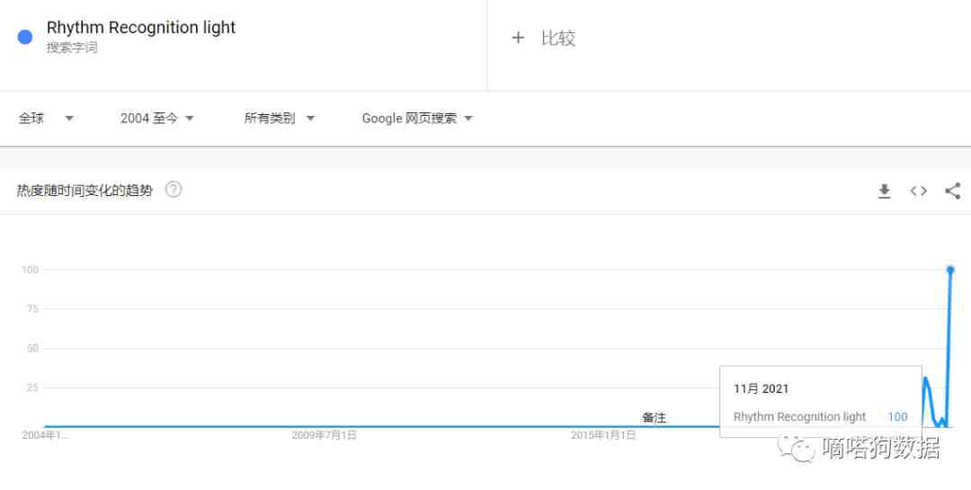 利用Google Trends查看趋势,得知产品相应关键词“Rhythm Recognition light”最近搜索趋势突然飙升,说明品牌近期宣传效果亮眼。