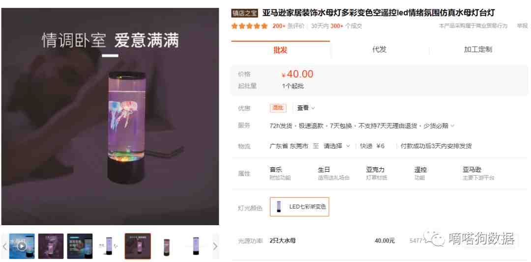 这类RGB水母灯在glolamps独立站搜索,价格为30.99美金/件,而在国内1688同款产品标价40元/件。