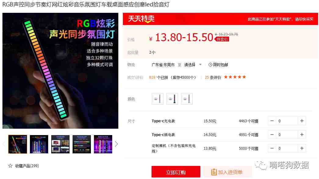目前,这款RGB节奏识别灯在独立站售价为19.99美元,而在国内1688平台,定制裸机标价13.8元,Type-c插电款标价14.5元,Type-c充电款标价15.5元。