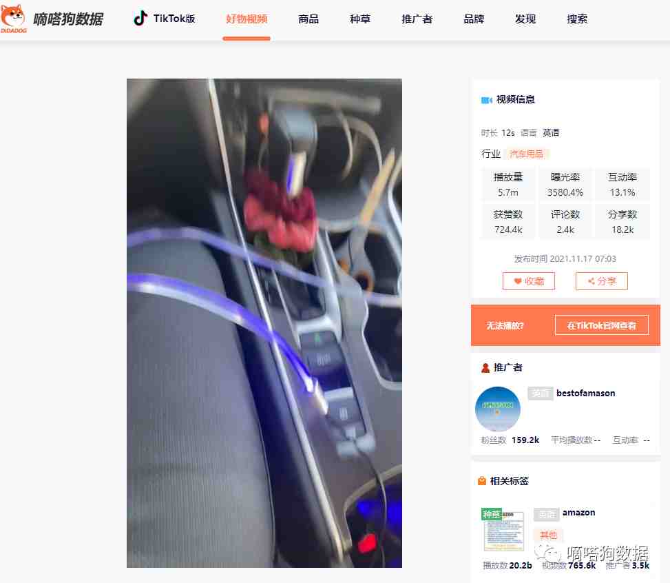 近期通过嘀嗒狗数据检测到几款在TikTok上很火爆的RGB灯饰,安装简单,轻松改变使用场景氛围。想体验TikTok选品工具的小伙伴可以找我免费领取试用和交流:xiievil。这款节奏识别灯能根据环境旋律改变灯条颜色,有8种颜色模式、9 种显示模式以及 3 种识音灵敏度模式,满足用户多样化的需求。产品接USB数据线就可正常使用,适合各种环境和场合,如汽车、家庭、卧室、派对、游戏室、音乐工作室,给用户带来额外的视觉享受。近期一条产品宣传视频在TikTok上成为爆款。