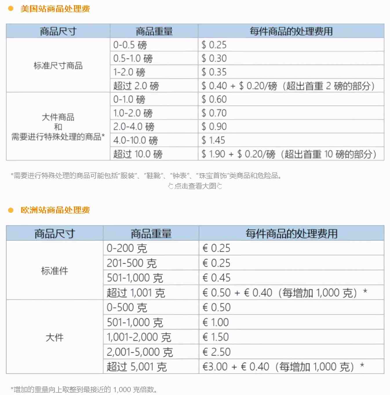 但是亚马逊提到,通常情况下,通过该计划清理的商品,亚马逊将收取商品处理费,以及销售佣金,后者将按照亚马逊物流各品类销售佣金比例收取。