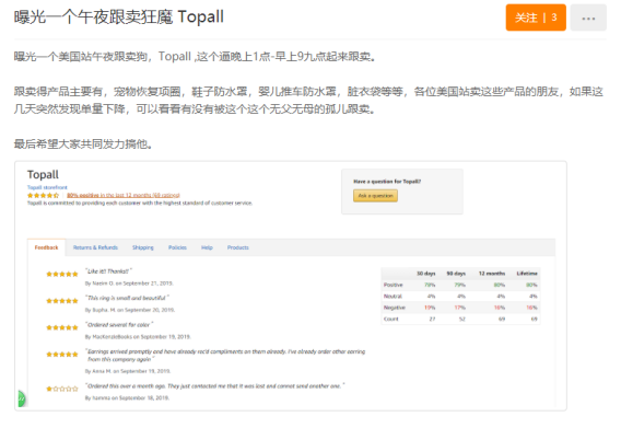 对于跟卖狗,既然一两次还搞不死,很多卖家喜欢发帖曝光,号召公众的力量共同弄死他,就如同下面这位卖家一样: