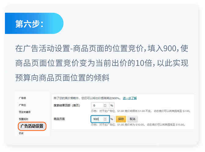 美国时间0时-5时是某个商品的出单低谷期,此时我们的调价目的,是将广告投放在商品位置上,我们可通过以下六步: