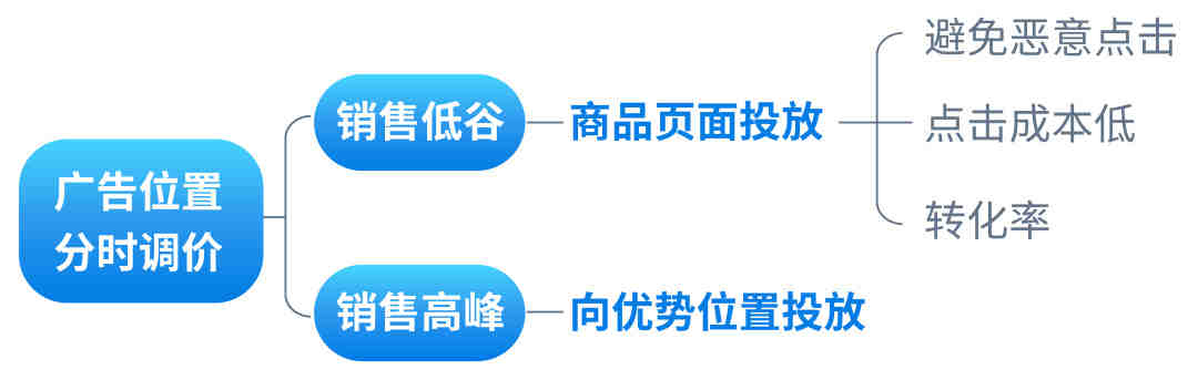 在低谷时段,可通过广告位置分时调价将广告投放在商品页面广告位置