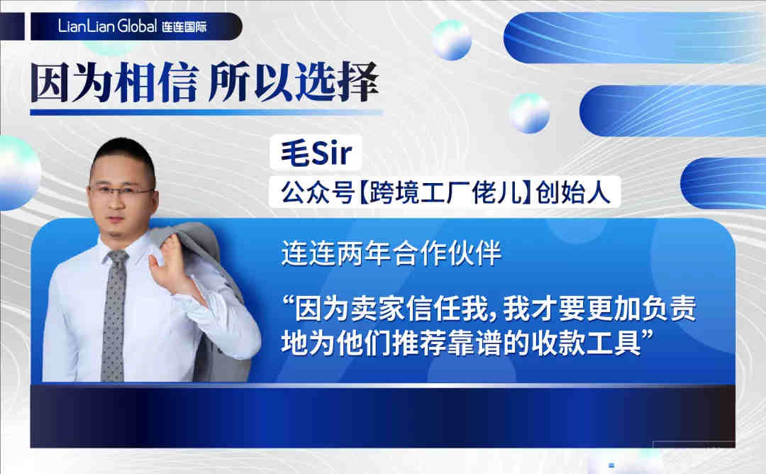 “连连不仅仅是跨境电商支付工具,也有非常专业的内容团队”,说到和连连的合作,老魏赞不绝口,“两年的合作,让我觉得连连的团队都非常热情和专业,愿意为我们提供一个开放自由分享的平台,也为扶持卖家不断地创新、突破自己。”