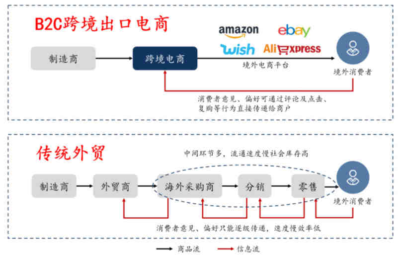 跨境电商的主流贸易模式是B2C,是全球化贸易发展的必然结果。跨境电商打破了传统外贸外贸电商的运营模式,只不过现在跨境电商和外贸的边界越来越模糊。