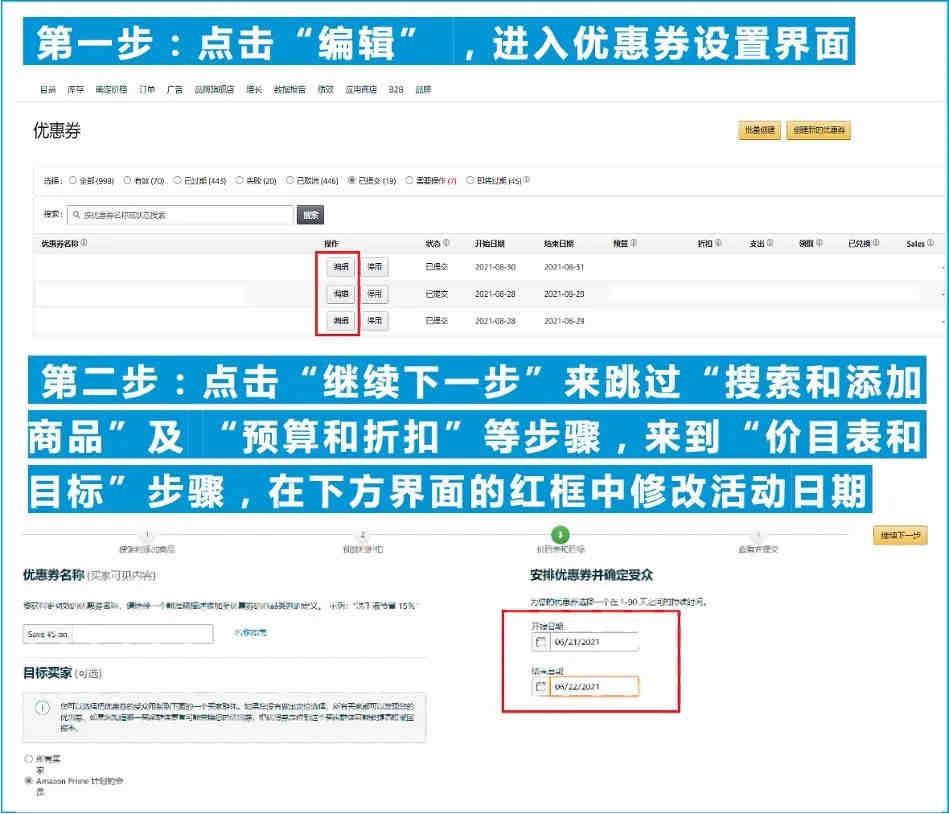如果现在查看卖家平台,你设置的会员日优惠券的开始/结束日期仍然显示为临时设置日期,则说明你的设置未完全符合亚马逊会员日优惠券要求,未获得批量调整。你需要自行调整优惠券的开始/结束日期。