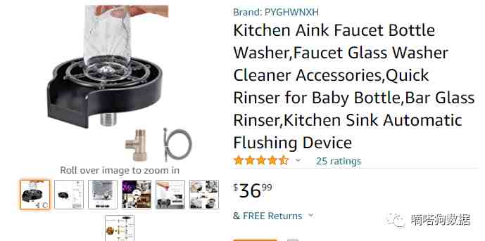 这款“Glass Rinser水杯清洗器”,在亚马逊上的价格为36.99美金。也有其他亚马逊卖家售卖99美金。