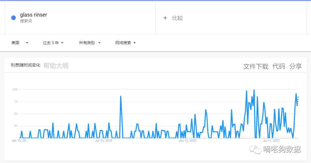 通过谷歌趋势我们可以了解到一定时期内,产品关键词在搜索引擎上的搜索热度趋势。
