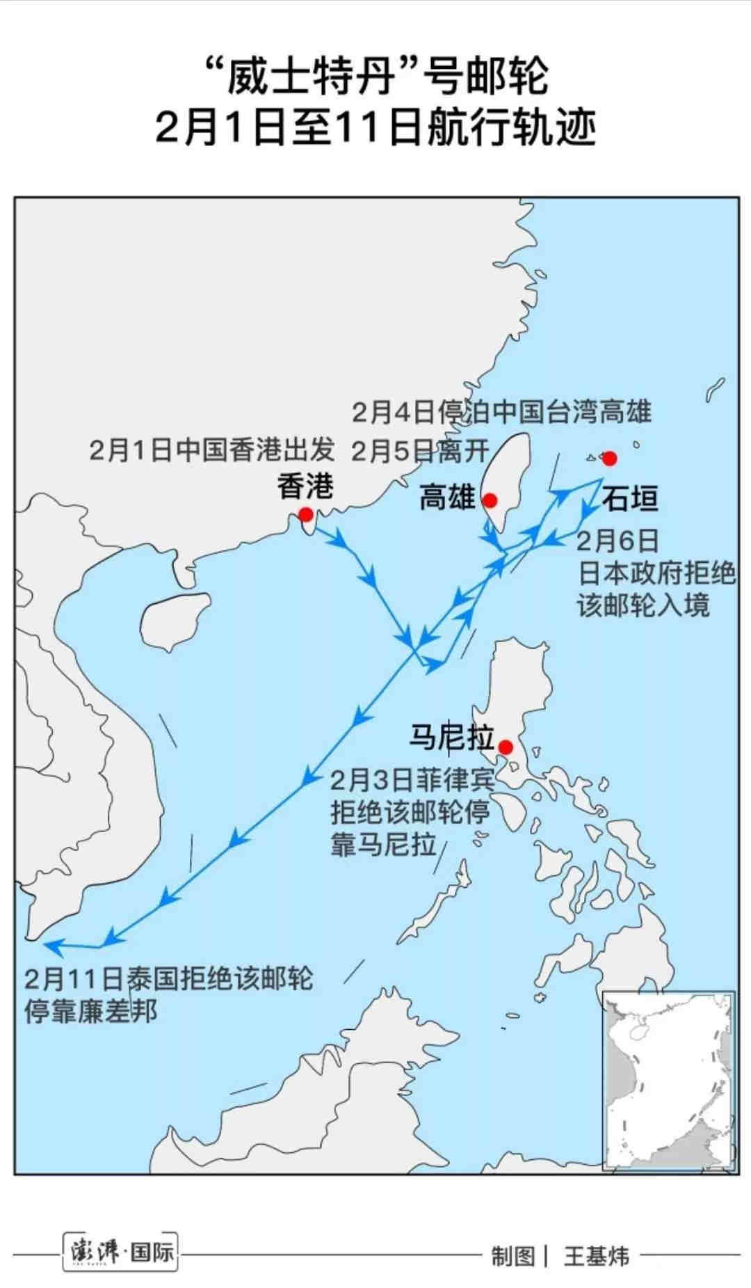由于担心新冠病毒传染,该船已被至少5个国家或地区的港口拒之门外。在柬埔寨之前,“威士特丹”号邮轮尝试在泰国普吉岛靠岸,遭泰国当局拒绝,理由是其他国家也这么做。