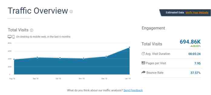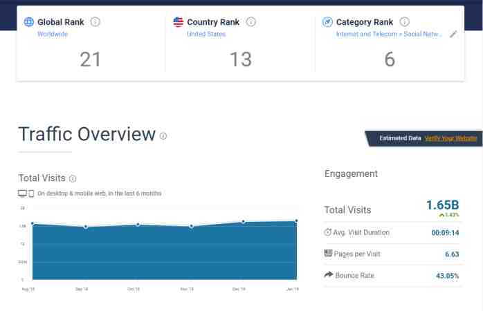 看一下Avg. Visit Duration和Bounce Rate。 可见Reddit用户体验非常好。