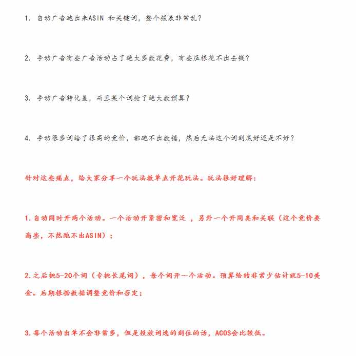 给大家分享一个投入比较少就能小爆的广告玩法。我们先暂且定义这个玩法是单点开花玩法,建议20VP以下的或者新品第一个月玩。目前是20个VP以上的或者新品超过2个月的不建议这个玩法。