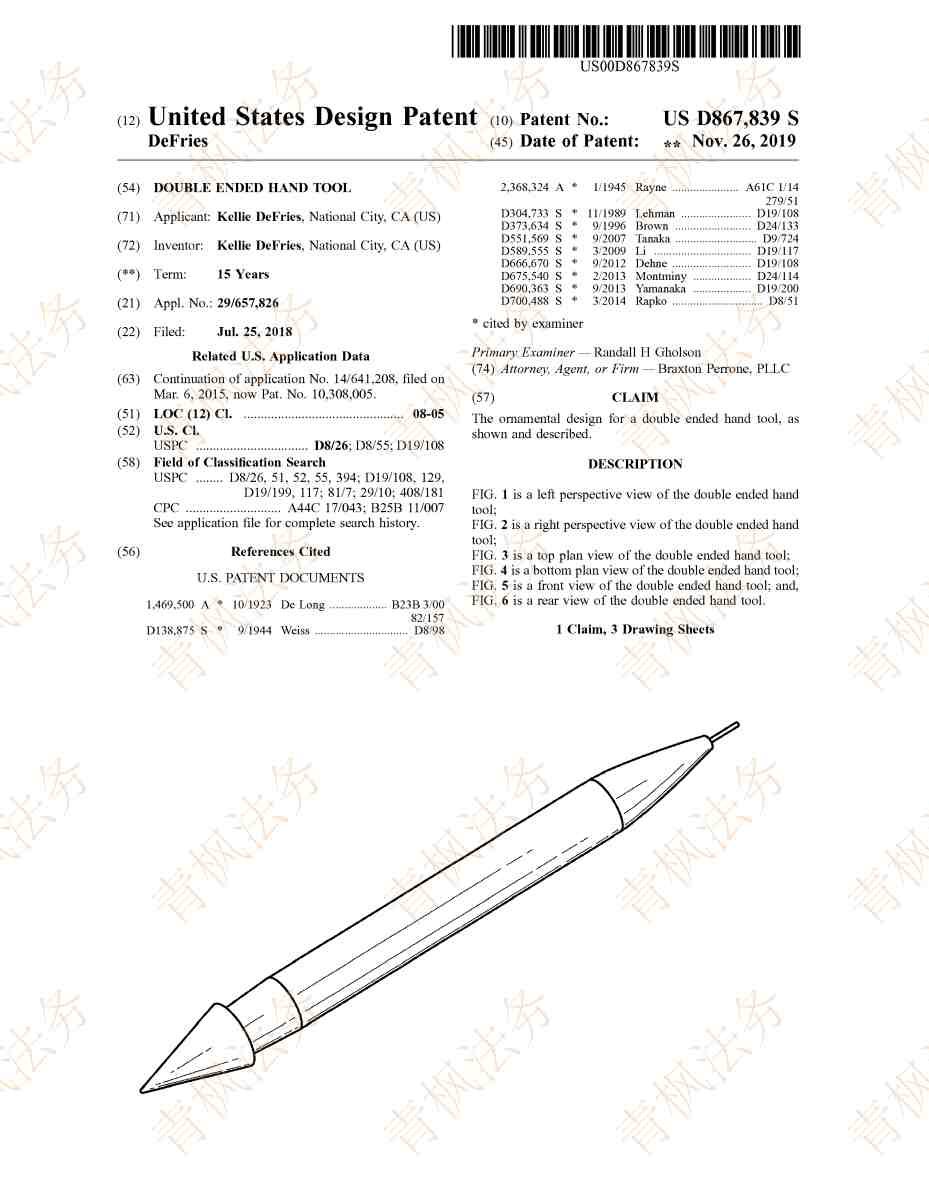 原告专利:拾取铅笔,专利于2019年11月26日下证