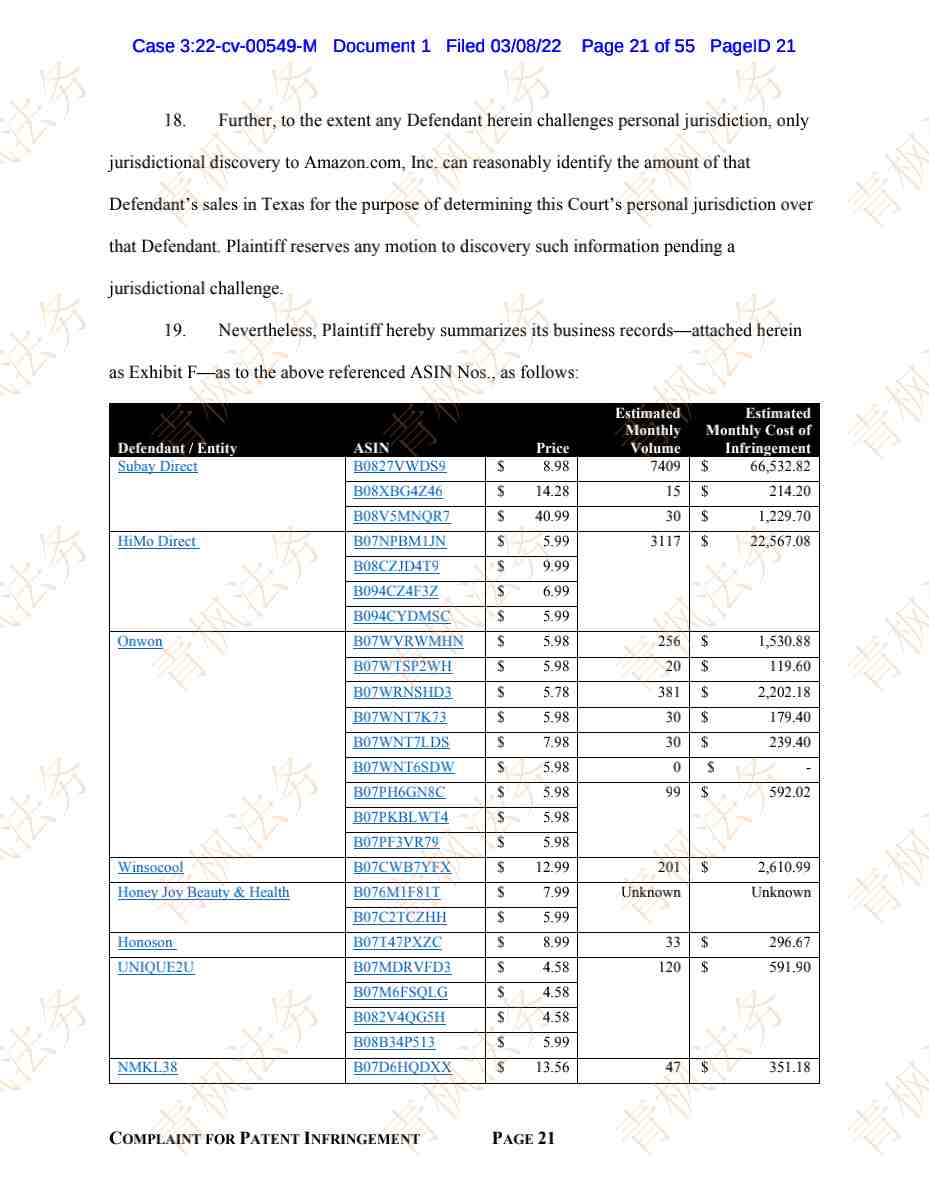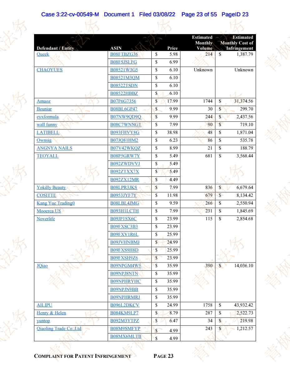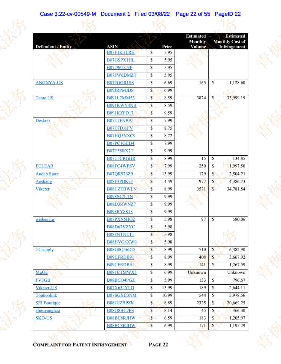 今天要同步的是2起专利案件,都有被告名单,目前案件尚未开始TRO冻结!