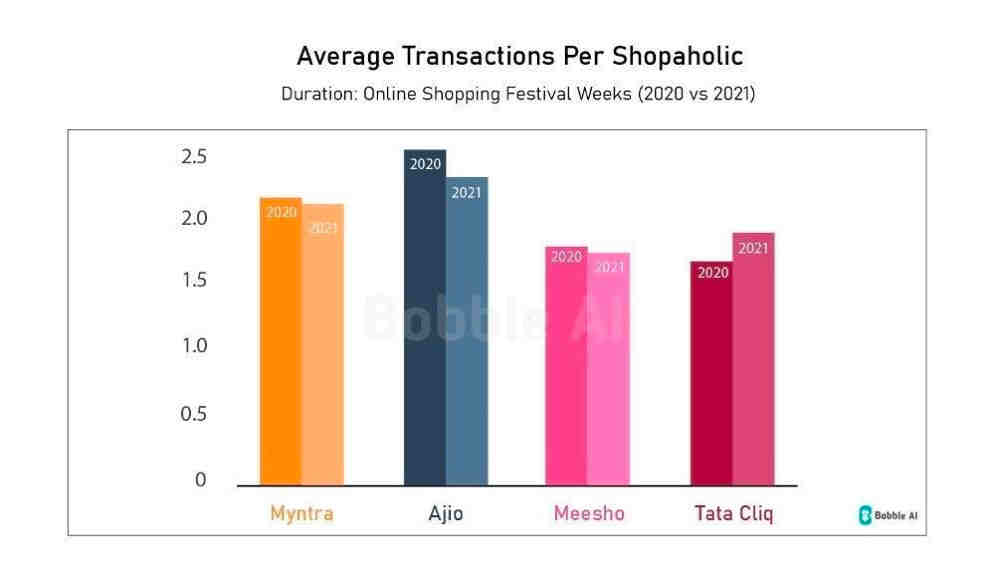 报告称,时尚巨头Myntra面临着来自其竞争同行Meesho、Ajio和TataCliq的激烈竞争。2020年节日期间,Myntra占到了46%的市场份额,而在2021年,Ajio占据了69%的份额。Myntra的活跃用户中,同样使用Meesho、Ajio和TataCliq的份额也大幅增加,表明消费者今年正在探索多种选择。
