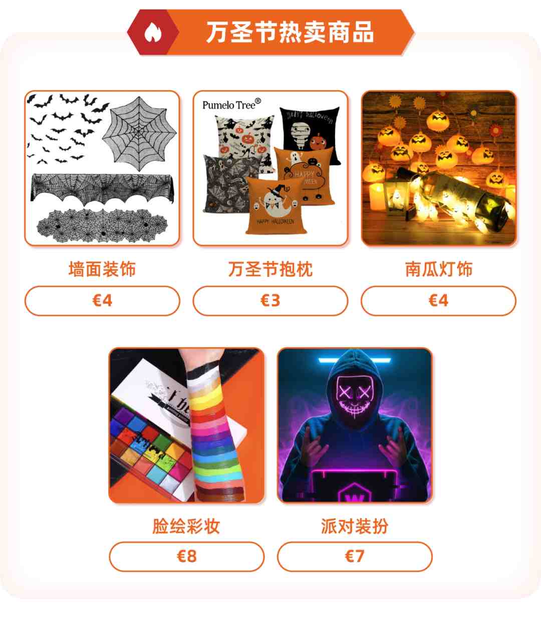 说回西班牙,作为一个不是在过节,就是在准备过节的国家,全国大大小小的节日加起来有两百多个。在刚刚过去的西班牙万圣节主题营销中,多款产品高达500单,甚至千单!
