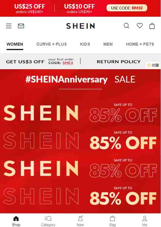 在细分市场划分下时尚购物APP占据最高市场份额的SheIn同样不容忽视,SheIn独立站于2010年推出西班牙站点,历经十余年深耕服装类目,以简洁明快的时尚杂志风格,独特的红人广告营销方式玩得明明白白,乐观的复购率或将成为Shopee西班牙站点服装卖家避不开的最大挑战。