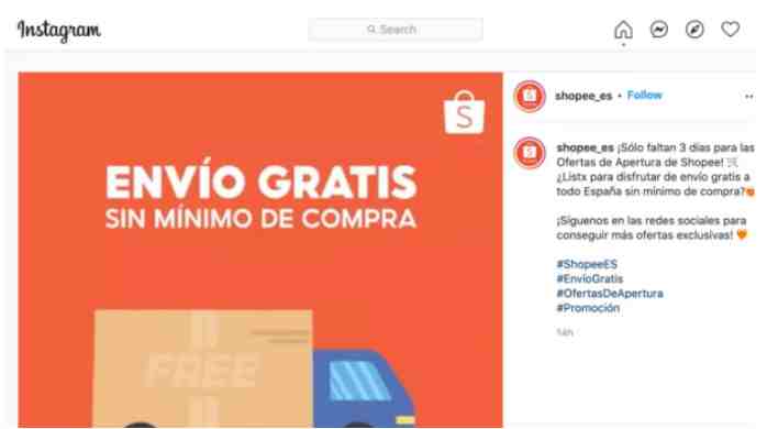据悉,Shopee的西班牙Instagram账户于10月8号发布了一个帖子,称将在欧洲国家提供免费送货服务,并提到将在3天后正式开业,开业福利除了包邮服务外,还将提供高达50%的折扣和新用户优惠券。