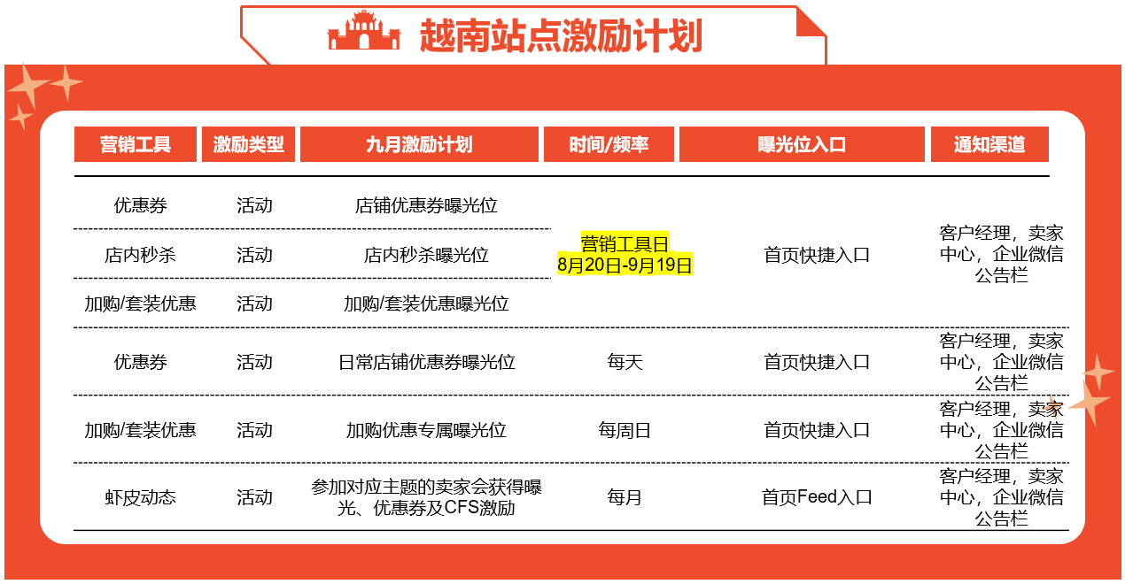 提前设置好各种营销工具有可能获得更多曝光资源哦!!快来看看各大站点的营销工具激励计划吧!