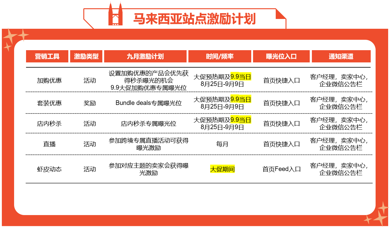 答:激励计划适用于积极使用营销工具的卖家,您可先提前使用设置上述营销工具,具体条件会在客户经理联系您时告知!
