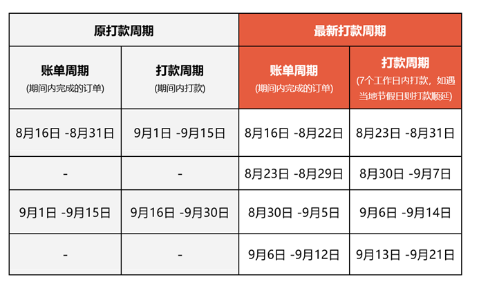 ②账单周期为8月1日至8月15日完成的订单,将统一在8月16日至24日(7个工作日)的打款周期打款。