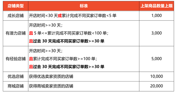 2. 店铺上架商品数量限制每周更新