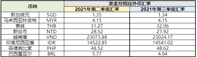 Shopee2021年第三季度(2021年7月6日-2021年9月30日)购买Shopee广告金汇款汇率如下表所示: