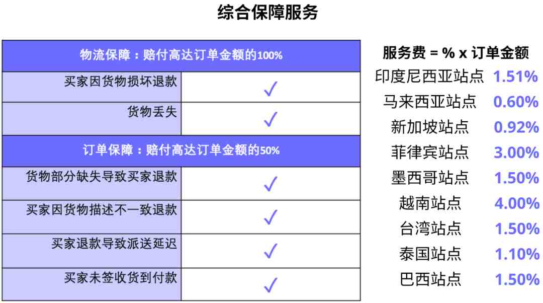 (1)9个站点全覆盖,与Shopee对接自动化集成系统,自动审理赔付符合条件的所有订单,24/7客服线上守候;