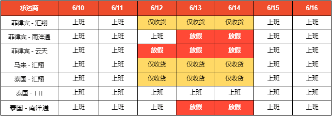 1. Shopee转运仓及免费揽货服务端午节放假时间