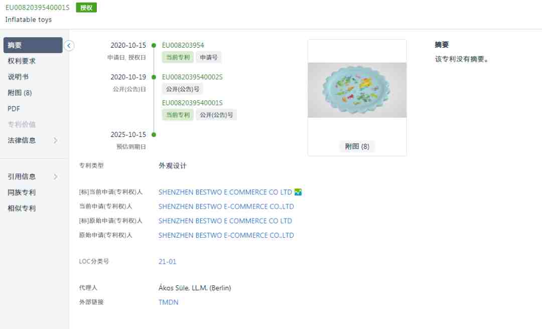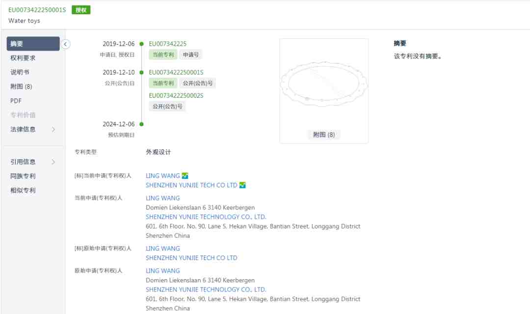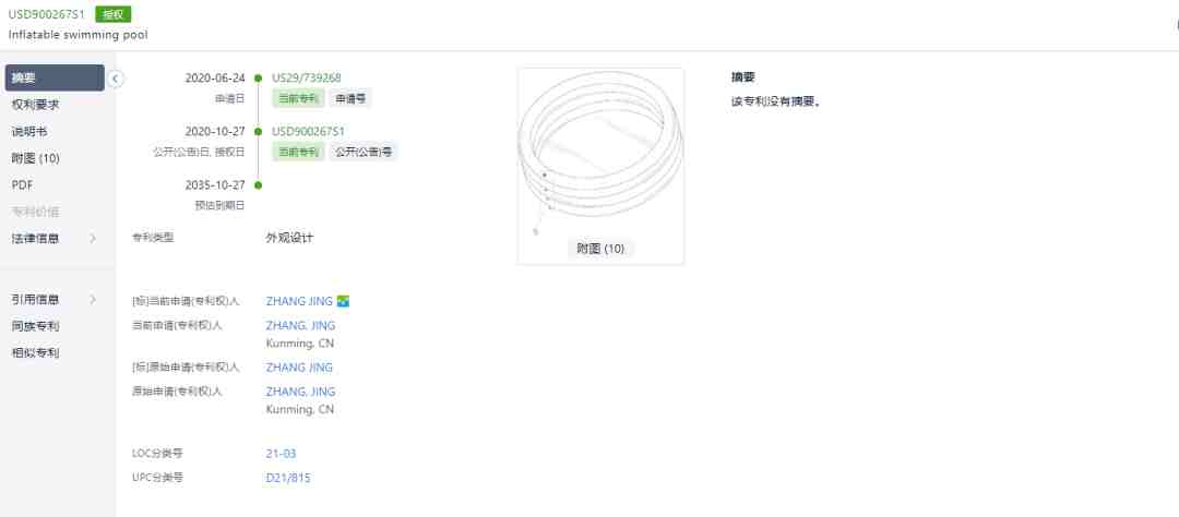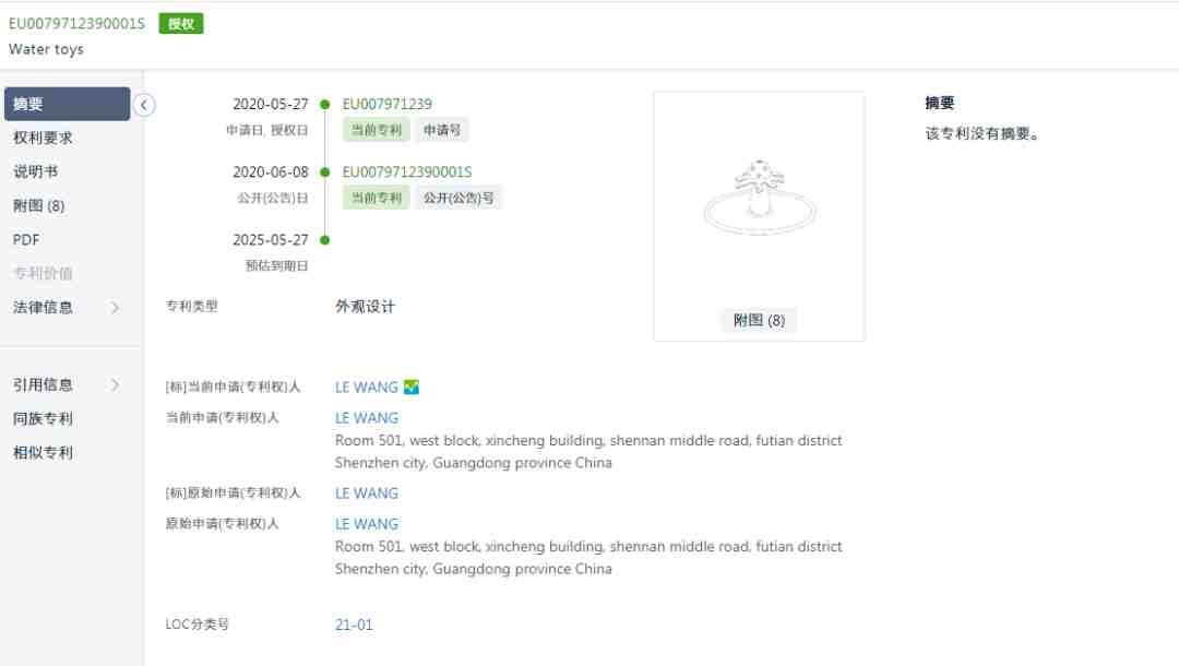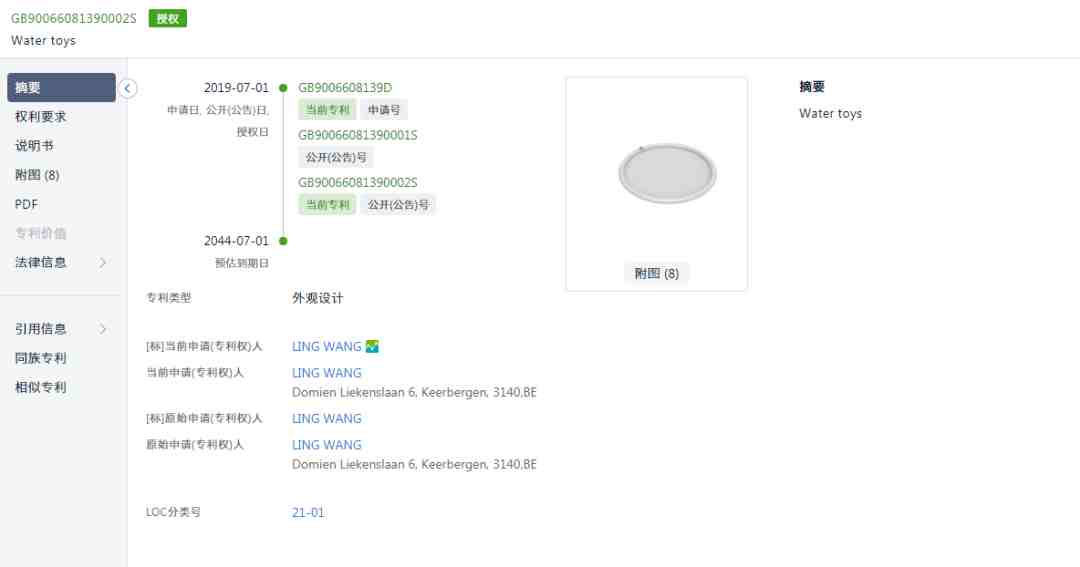 以“Splash pad”或者“水上玩具”为关键词搜索,可以搜索到以下一款相关的美国发明专利 产品: