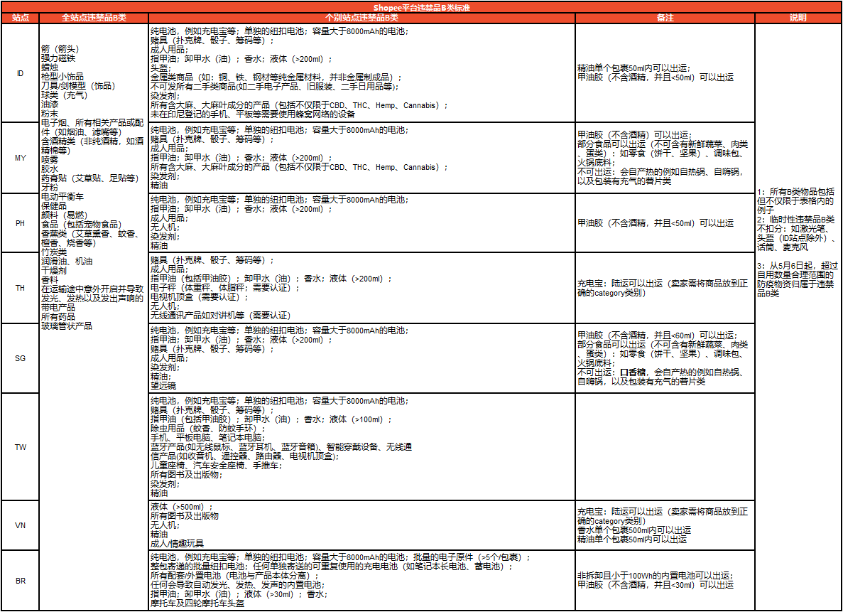 Shopee平台违禁品B类标准