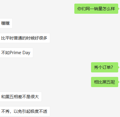 当然了,要说销量翻倍的卖家还是有的,“平常1单,今天2单,算翻倍吧?”![]()