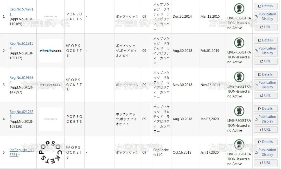 该品牌主要起诉的是商标侵权和外观设计专利。小信提醒卖家们:除了 POPSOCKETS 之外,还需要注意的有:POP、PopMinis、PopTop、TWIST、POPGRIP、POP FORPURPOSE、POPCLIP 等商标。