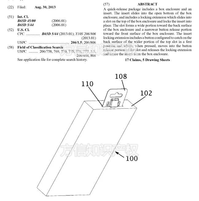 其次,外观专利保护上该品牌也丝毫没有松懈!主打产品手机支架的美国专利超过 10 个,而配套使用的手机支架座也分别登记了美国和欧盟外观,甚至连产品包装都申请了相应的专利保护。