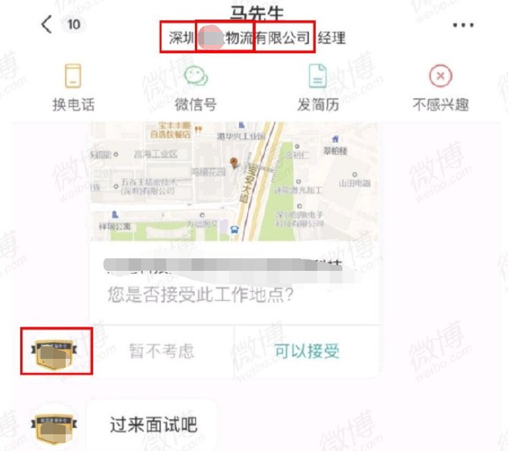 ▲招聘公司显示为A物流公司,头像为B海外仓