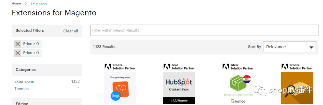 Magento插件市场以及我们本文要说的shopify插件市场,讲到这里我们可以简单先看一下mangento的插件市场情况。