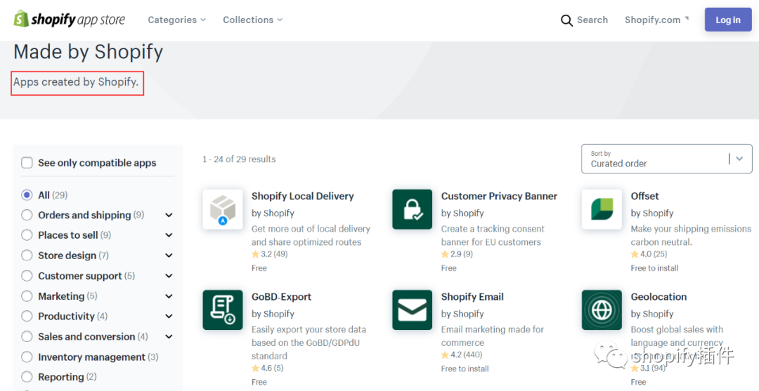 这其中,shopify官方开发的共29款,但让人有点意外的是超过22款评分是在4分以下(与亚马逊合作开发的亚马逊线上销售渠道评分竟只有1.5),占比80%;