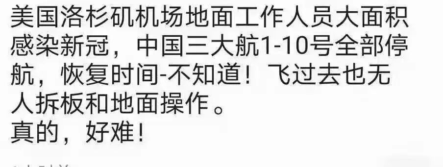 今天由于一则突发消息被货代刷屏朋友圈了! 据了解,由于美国疫情再次爆发,美国洛杉矶机场LAX当地拆板人员大面积感染新冠疫情,CA(中国国际航空公司)通知取消12月1日到10日所有LAX客改货航班,后续恢复时间待定! 有货代无奈说道:“现在即使货物运过去也无人拆板和操作。” (朋友圈截图) 根据通知显示,CZ(中国南方航空公司)预取消2月初10架次航班,预计MU(中国东方航空公司)会跟进。货代表示目前情况比较严重,CA LAX所有货物停止操作,已进仓货物做好退仓准备,已出港货物做好退运准备。 除此之外,还有以下三点值得注意: 1、CZ MU所有货物等代理/航司告知航班正常计划再进行操作。 2、所有 LAX ME包机货物不确认运价不允许送仓,尺寸有重大出入货物直接拉下退回货主。 3、外航,例 OZ KE CI等航司的美线货物,请再三确认航班以及运价后方可操作。 (朋友圈截图) 就在截稿之前,许多货代已经再次发出紧急通知:“从即刻起,无论是否订舱锁位,系统中所有1号起的LAX航班货物,不管使用公司原有定班仓位还是各地包机航班,请务必不要进行进仓操作。” 从目前各渠道所了解,情况非常不容乐观,货站人力严重不足,美西机场和港口货物堆积严重,瘫痪已有一段时间,有些卖家的紧急货物更是被迫选择飞到美东再转卡车寄送。 货代表示:“12月份运费会涨,海运和空运的时效会更加不确定,仓位也会更加紧张,非常无奈。" 对此,也有货代吐槽道:”空运的飞机是飞过去了,但是货卸不来;海运的船是开过去了,但是没车架,加上提柜派送当地宵禁等一系列操作下来,国内缺箱了。” 值得卖家注意的是,年终旺季的货运量正在暴涨,航空面临停航,而海运码头同样也面临劳动力不足塞港的问题,国外卡车也难以预约,12月份海派也可能会顶不住压力,出现大面积延误和爆舱的情况! 民航局再向3航班发出熔断指令 涉四川航、南航等 现在美国依旧稳坐最大疫情国“宝座”,由于川普政府消极抗疫,导致美国疫情始终未能控制下来,现在美国累计确诊病例已经超过1319万例。 美国许多州疫情已经开始失控,新增确诊和死亡一再创新高,各地医院已经爆满,全美住院患者超过8.8万人。现在拜登即将上位,但美国的形势十分不乐观,拜登想扭转美国局面非常难。 据媒体报道,为了防止进一步加剧,对国内疫情防控带来不利影响,11月26日,民航局再发熔断指令,自11月30日起,对南航、俄罗斯阿祖尔航空公司、四川航等航空公司的3个航班采取熔断措施。 此前,民航局就已发布过9家航空公司航班实施熔断,涉及13条航线。 (熔断航班部分截图) 根据民航局通报,上述熔断的航班量不得用于其它航线。四川航3U8392航班、俄罗斯阿祖尔航空公司ZF1678航班11月30日前的航班可继续执行,如期间触发熔断机制,熔断时间将予以累加计算。 不管是卖家还是货代,切记要及时关注消息,避免遭受损失。目前,关于美国洛杉矶机场我们正在持续关注,后续也会及时更新更为准确的消息。 美国经济状况恶化 多地民众排长队领救济 美国新冠肺炎疫情的持续恶化给当地低收入民众温饱问题带来了巨大的挑战,据美国媒体报道,美国多个州申领“救济”的人数比往年大幅增加。随着美国传统节假日到来,美国越来越多地方出现排长队领取救济食物的场景。 有工作人员介绍道:“受疫情和失业率的影响,今年洛杉矶地区分发救济食品的需求激增,一些节日食品分发比去年多了一倍多。” 据美国有线电视新闻网等美国媒体26日报道,美国救济组织“赈济美国”公布的一项报告统计,2020年有5000多万美国人没有足够食物,也就是说,有接近六分之一的美国人口,包括四分之一的儿童,今年面临吃不饱的问题。 美国的消极抗疫,给跨境电商卖家和外贸人士带来的影响愈加显著,航班熔断、物流受阻、订单暴跌......只能说2020年活下去就好!