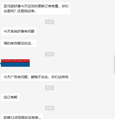 昨晚,在卖方通卖家交流群中,有大量卖家反映,亚马逊系统似乎不正常,登录后台总是提示网站错误,且订单持续多时不更新,广告也烧不出去,但是排名却维持不变。