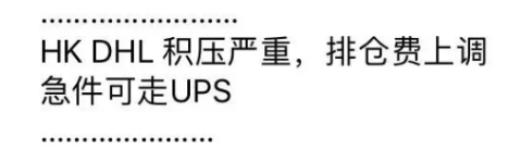 虽说FedEx拒绝派送,但卖家可以选择UPS、DHL等,时效也相对较快。不过,这两日浦东机场UPS货运安检员确诊后,从11月23日开始,UPS华东货物会转移到深圳口岸出口,货物运出时间会受到影响,而DHL这边据说在香港货物积压挺严重的。