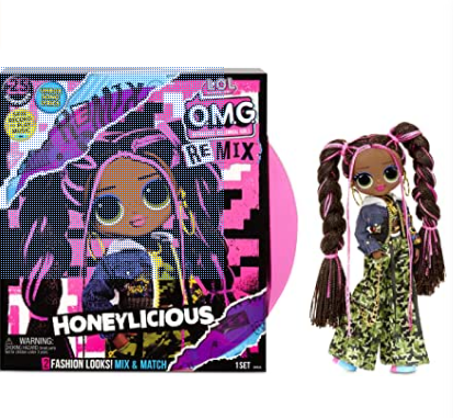 8.L.O.L Surprise! O.M.G. Remix Honeylicious Fashion Doll– 25 Surprises with Music