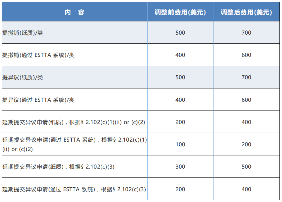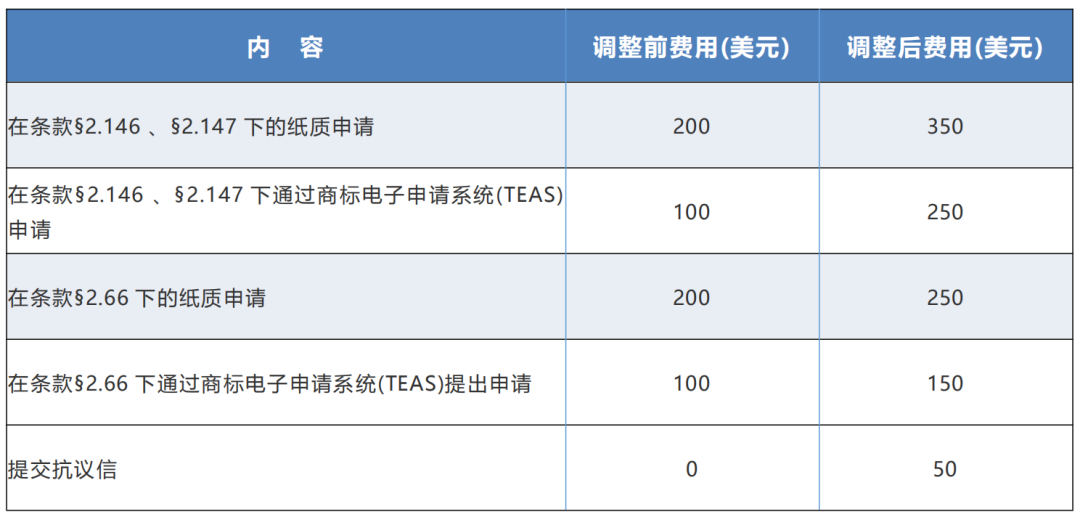 据悉,这是美国商标局近三年来第一次上调收费标准,主要针对的申请项目有: