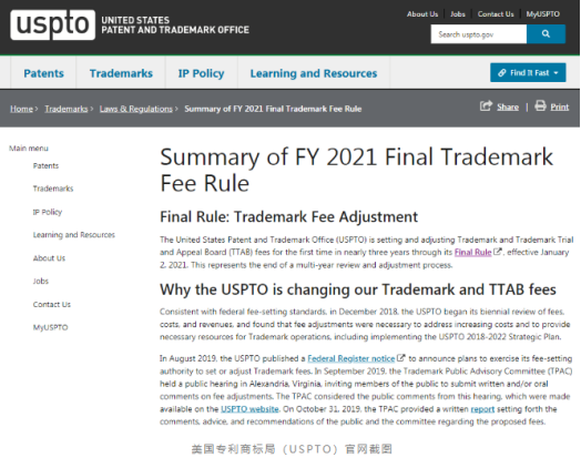 根据最新消息,11月17日,美国专利商标局(USPTO)宣布决定调整收费标准,新的收费标准将于2021年1月2日开始实行。