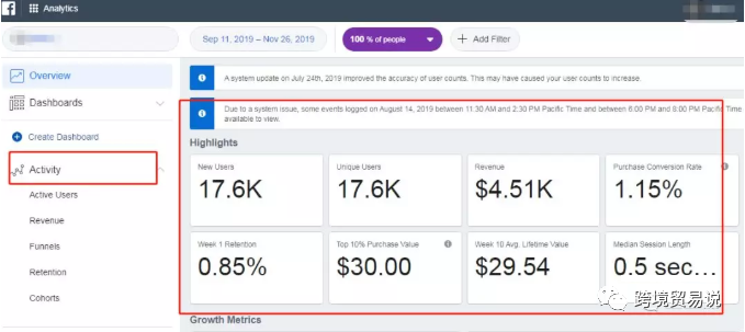 这时我们就可以看到我们这个Pixel所抓取的网站里的数据。数据如何,不用管它,这不是今天的重点。我们点击右边的acitivity