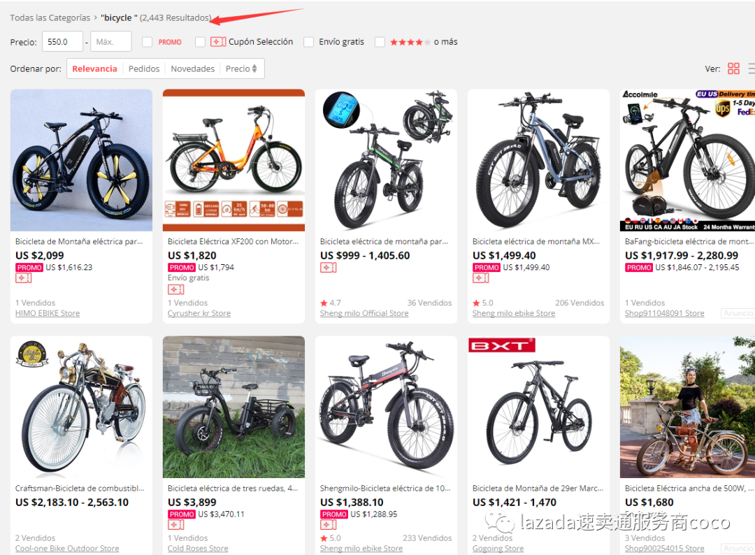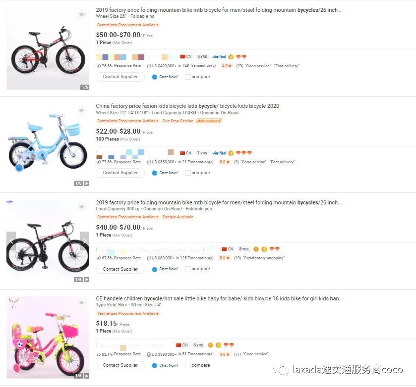 阿里巴巴国际站“自行车”关键词搜索结果页面