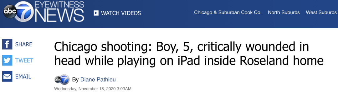 其中,一5岁男孩正在家中的沙发上玩耍时,有人驾驶一辆汽车在街边拐角处驶过,并向附近的居民区扫射,男孩头部中弹。芝加哥警方表示,案件正在进一步调查中,目前并未逮捕任何嫌疑人。