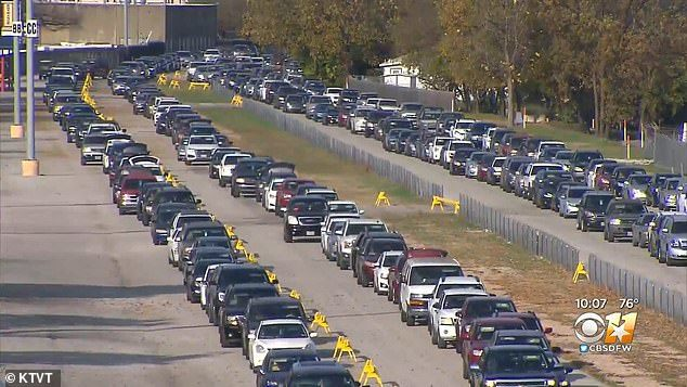 《每日邮报》11月16日报道,上周末,美国德克萨斯州数千个的家庭在一家食品救济中心排队领取食品杂货。四成居民是头一次从食品银行领救济。