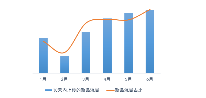 图:2020年上半年,Wish平台30天内上传新品的流量趋势图