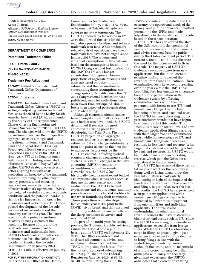 最新消息,就在昨日,美国专利商标局官方宣布调整商标收费标准,美国商标官费又要涨价啦!新的收费标准将于2021年1月2日开始实行。