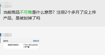 据卖家自述:账号注册两个多月没上传产品,后台显示当前商品不可售,是被封掉了吗?